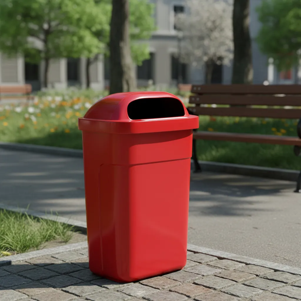 Papelera Clásica 50L DIN, Rojo pertenece a la familia Papeleras. Referencia 000071 de SULO, publicada para validar compatibilidad, disponibilidad y siguiente paso comercial desde una sola ficha.